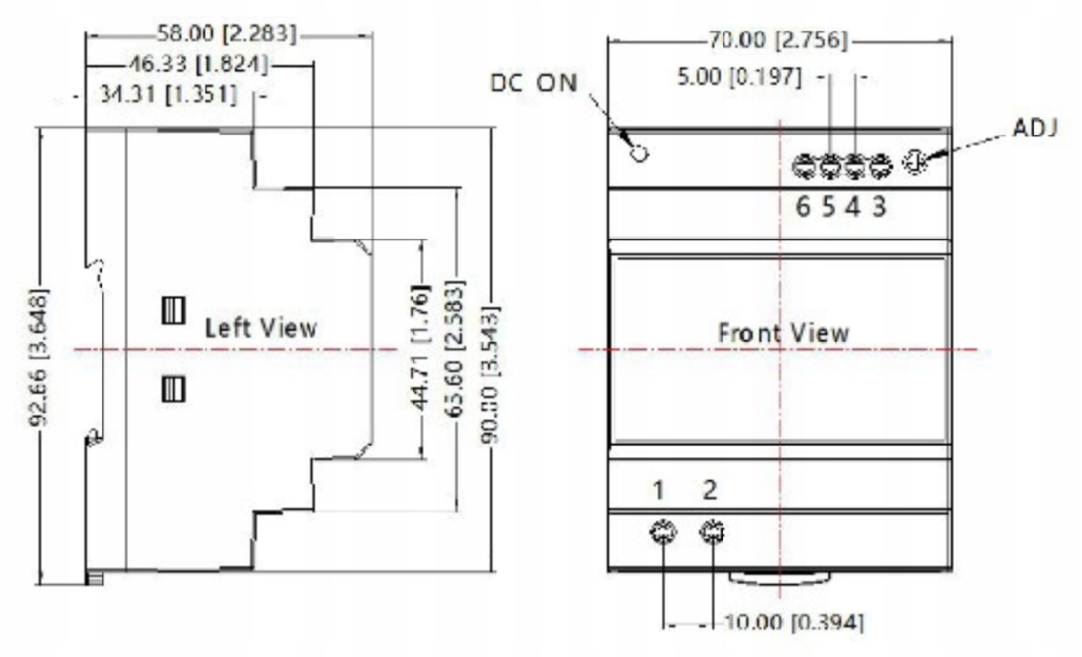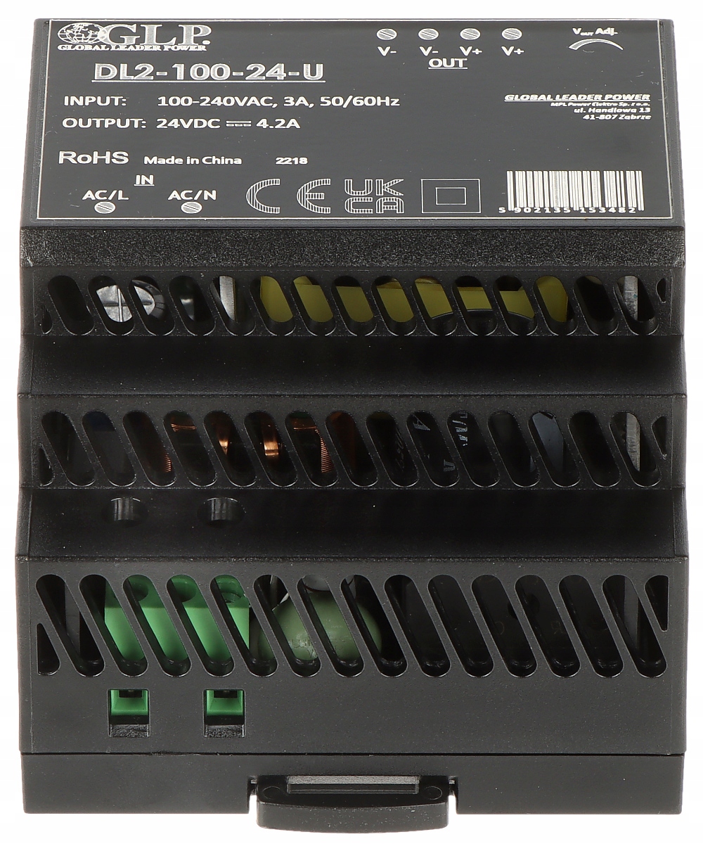 Импульсный источник питания, устанавливаемый на DIN-рейку TS35/7,5 или 15, устойчивый к высоким рабочим температурам (до 70°C).