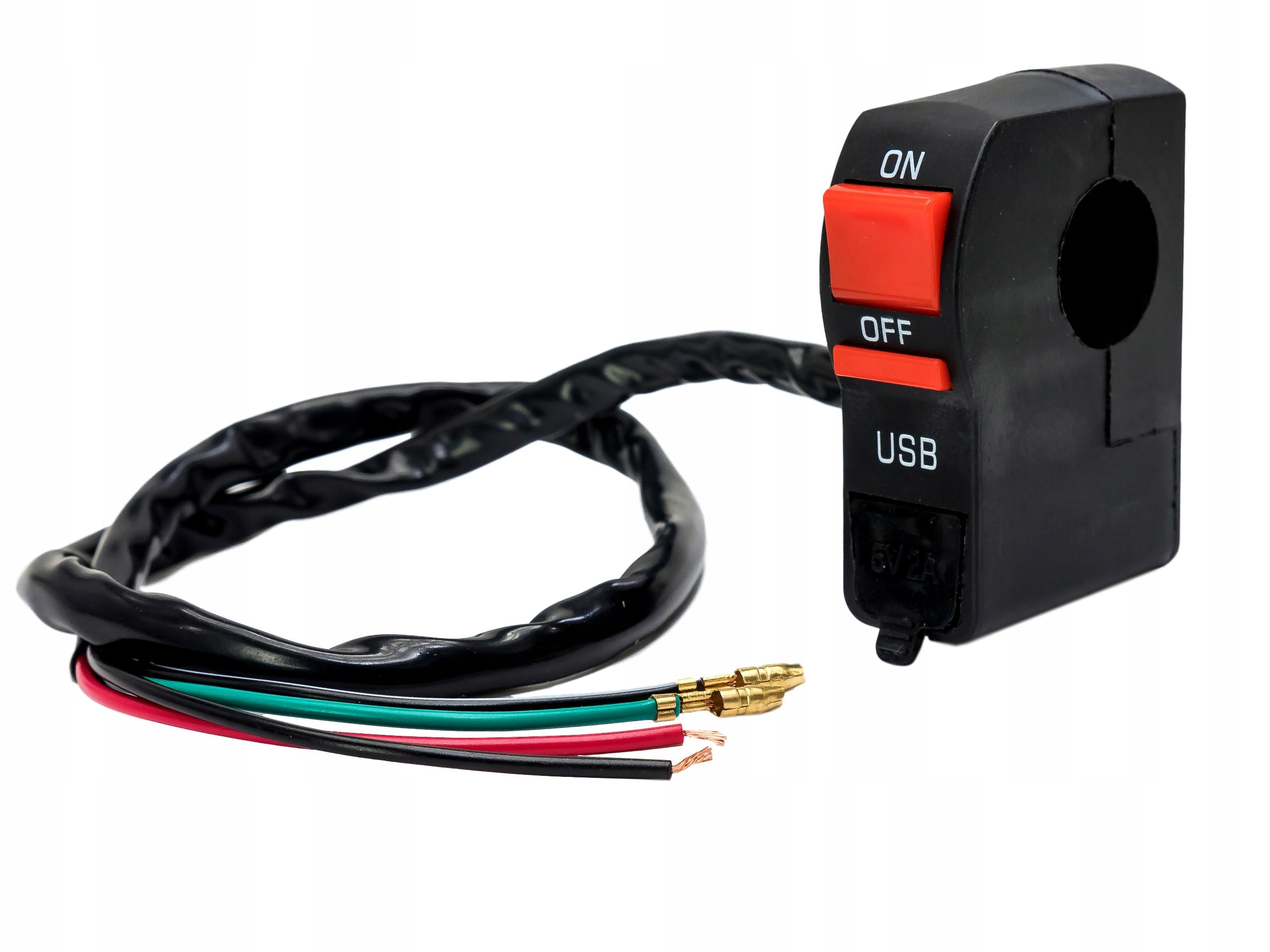 Переключатель ВКЛ/ВЫКЛ мотоцикла для установки на руль диаметром 22 мм, встроенный в зарядное устройство USB 5 В, 2 А.