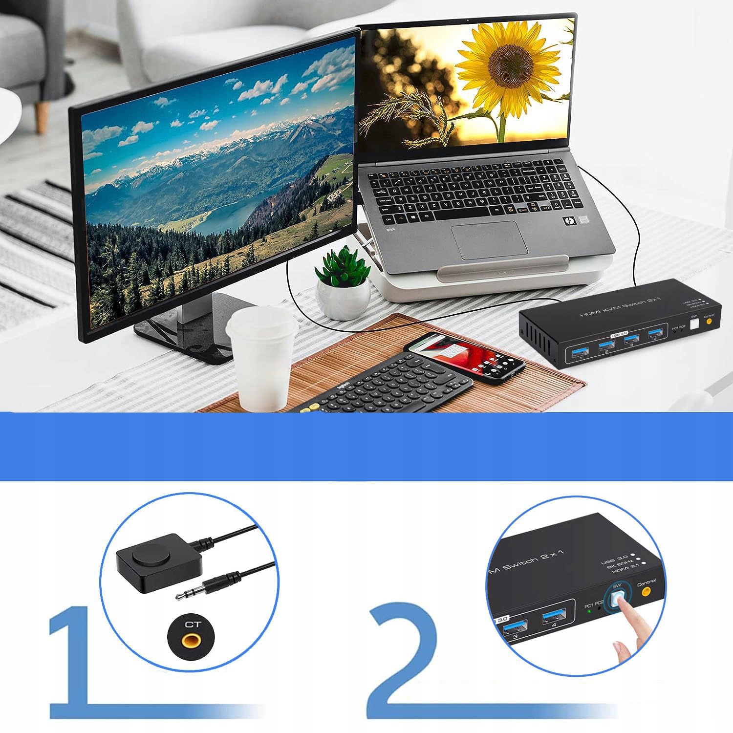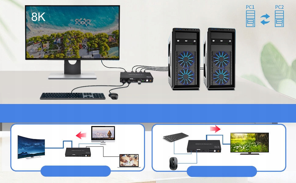 ⭐⭐ USB KVM-переключатель + HDMI 2/1 8K@60 Гц⭐⭐