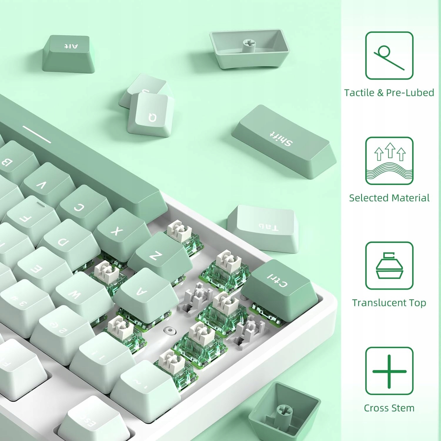 Переключатель механического ключа v3 Клавиатура, предварительно смазованная льня Клавиатуры MX для DIY/Клавиатура для игроков Бабонов (100 ПК, желе зеленого цвета)
