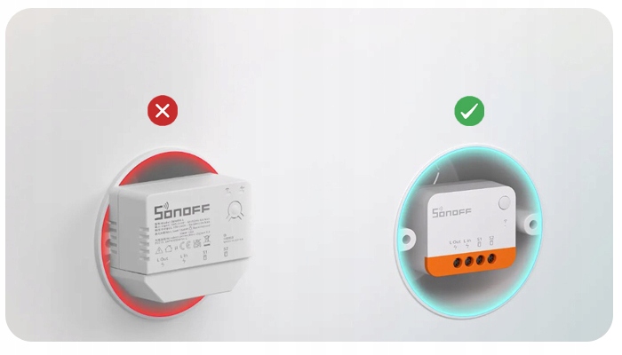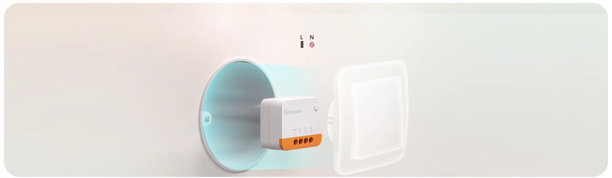 Sonoff Smart Switch отличается небольшими размерами, а это значит, что его можно монтировать в различные монтажные коробки, даже самые маленькие - EU/86/120. Кроме того, он работает с различными типами внешних переключателей, например, кулисным переключателем или настенным переключателем с кнопками. Устройство Sonoff также легко устанавливается и не требует нейтрального провода.