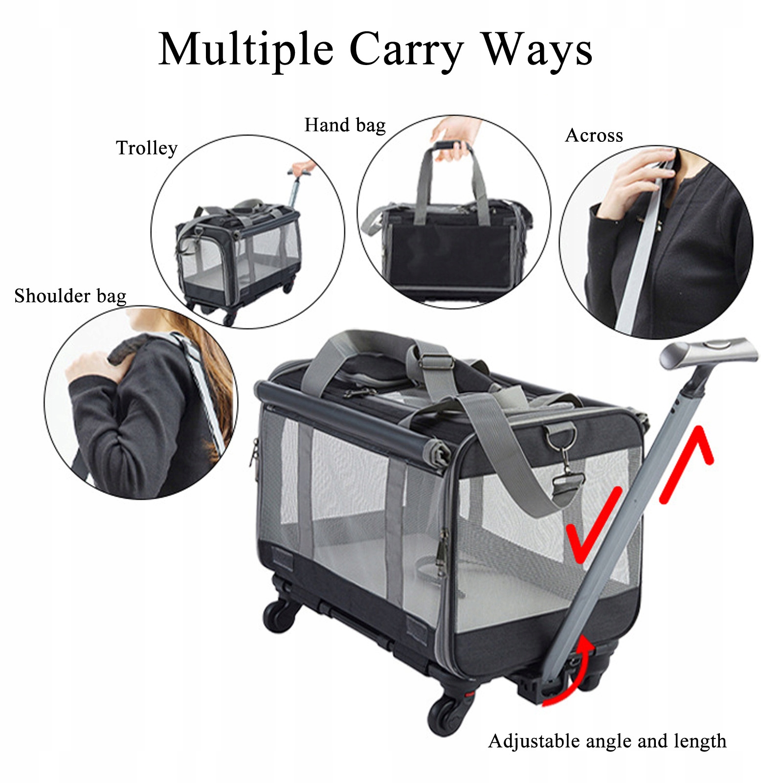 Переноска для собак и кошек на колесах. Дышащий, с 4 2D-сетками.