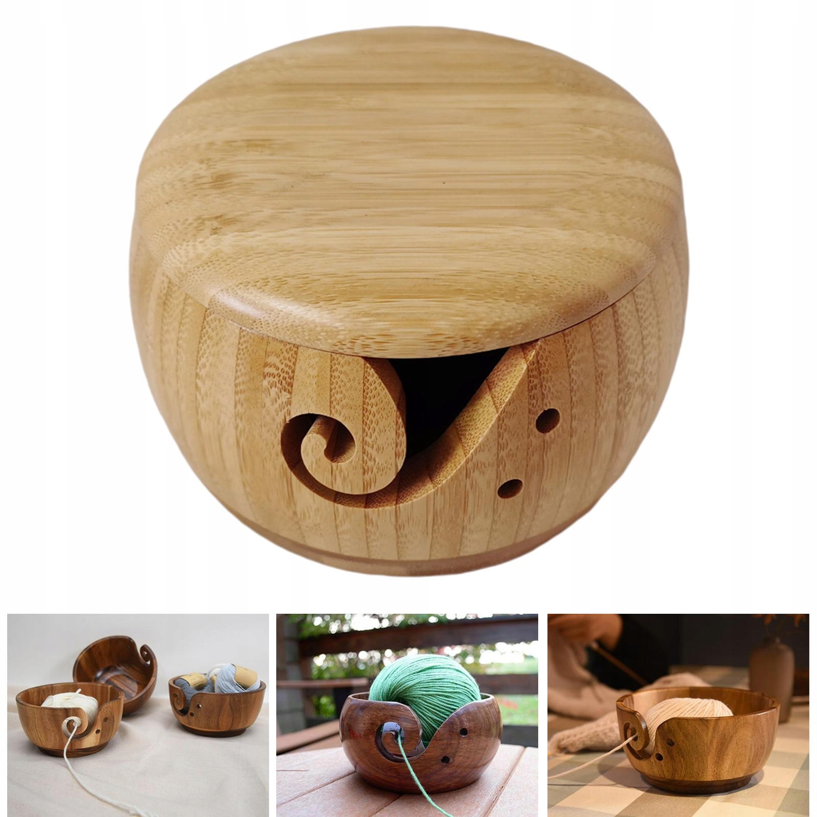 Переносная миска для пряжи с крышкой Круглая бамбуковая миска ручной вязки с крышкой