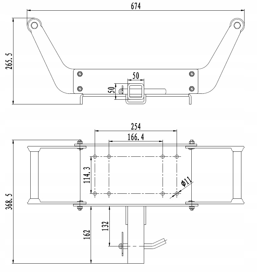 - стандартное расстояние между монтажными отверстиями для лебедки на пластине - 166,4 мм х 114,3 мм или 254 мм х 114,3 мм