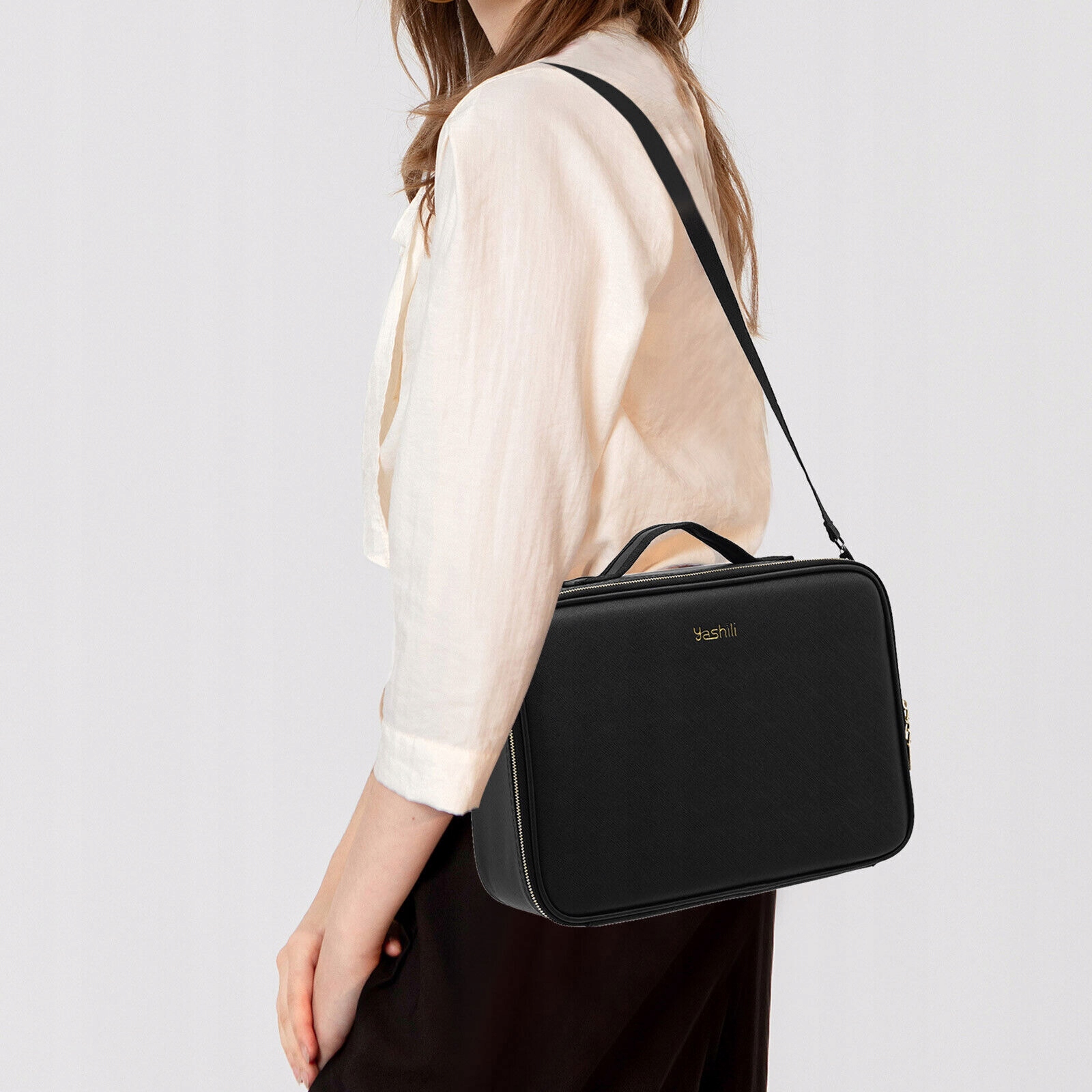 - Стильная и изысканная: эта косметичка имеет классический и универсальный черный цвет, а ее изысканный внешний вид настолько стильный, что вы можете Не могу не влюбиться в нее.