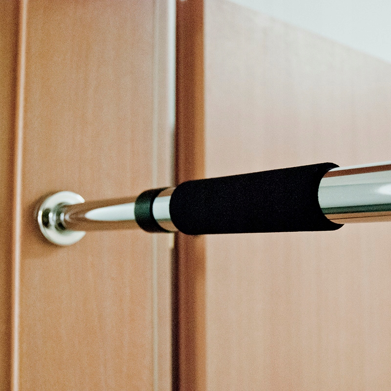 Сплошной и прочной стержень расширения из хромированной стали, предназначенный для монтажа в дверной раме или между стенами. Идеально подходит для силовых тренировок и растяжения дома.
