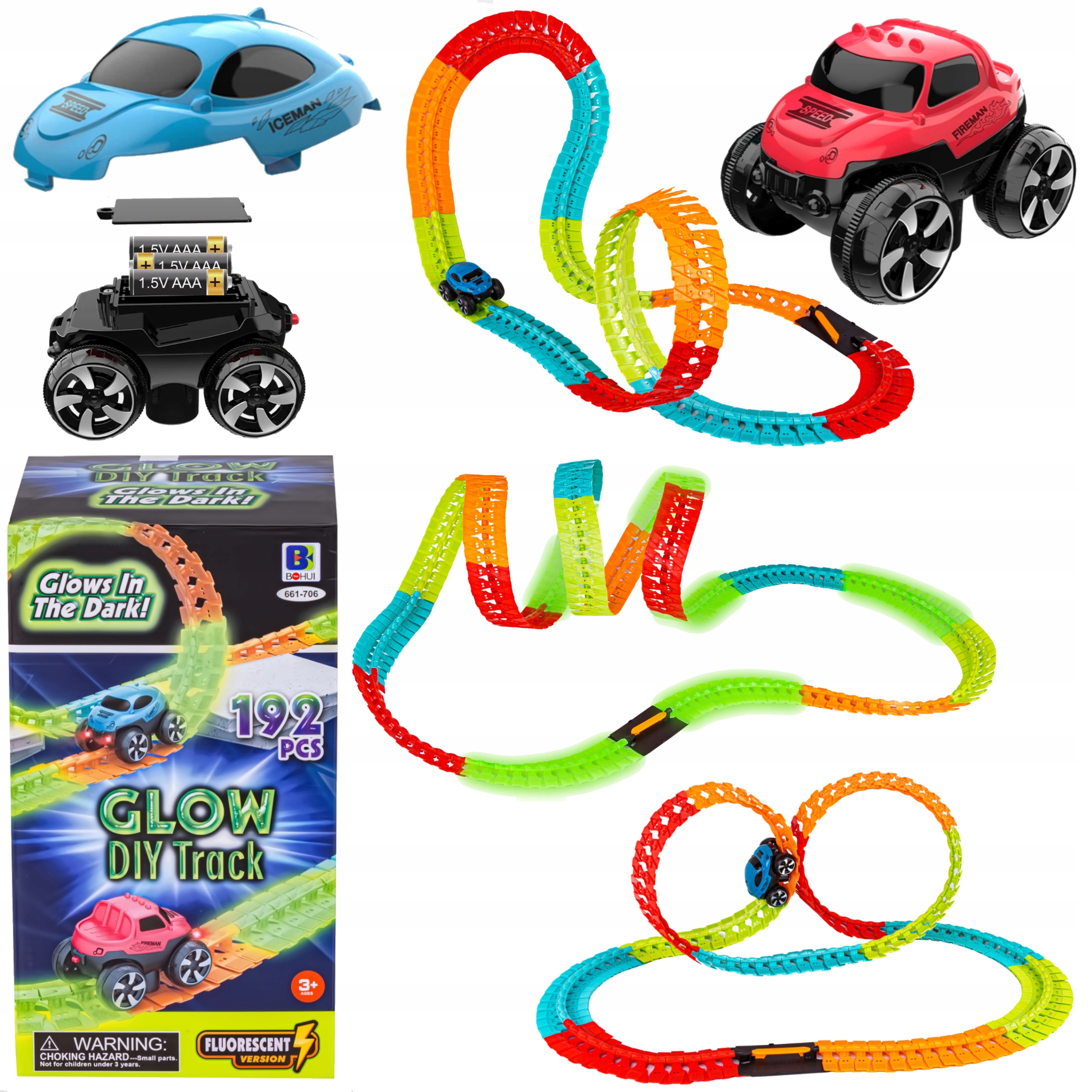 Передвижной АВТОМОБИЛЬНЫЙ ГОНОЧНЫЙ ТРЕК НАБОР LED FLUO MAGIC TRACK, 192 шт.