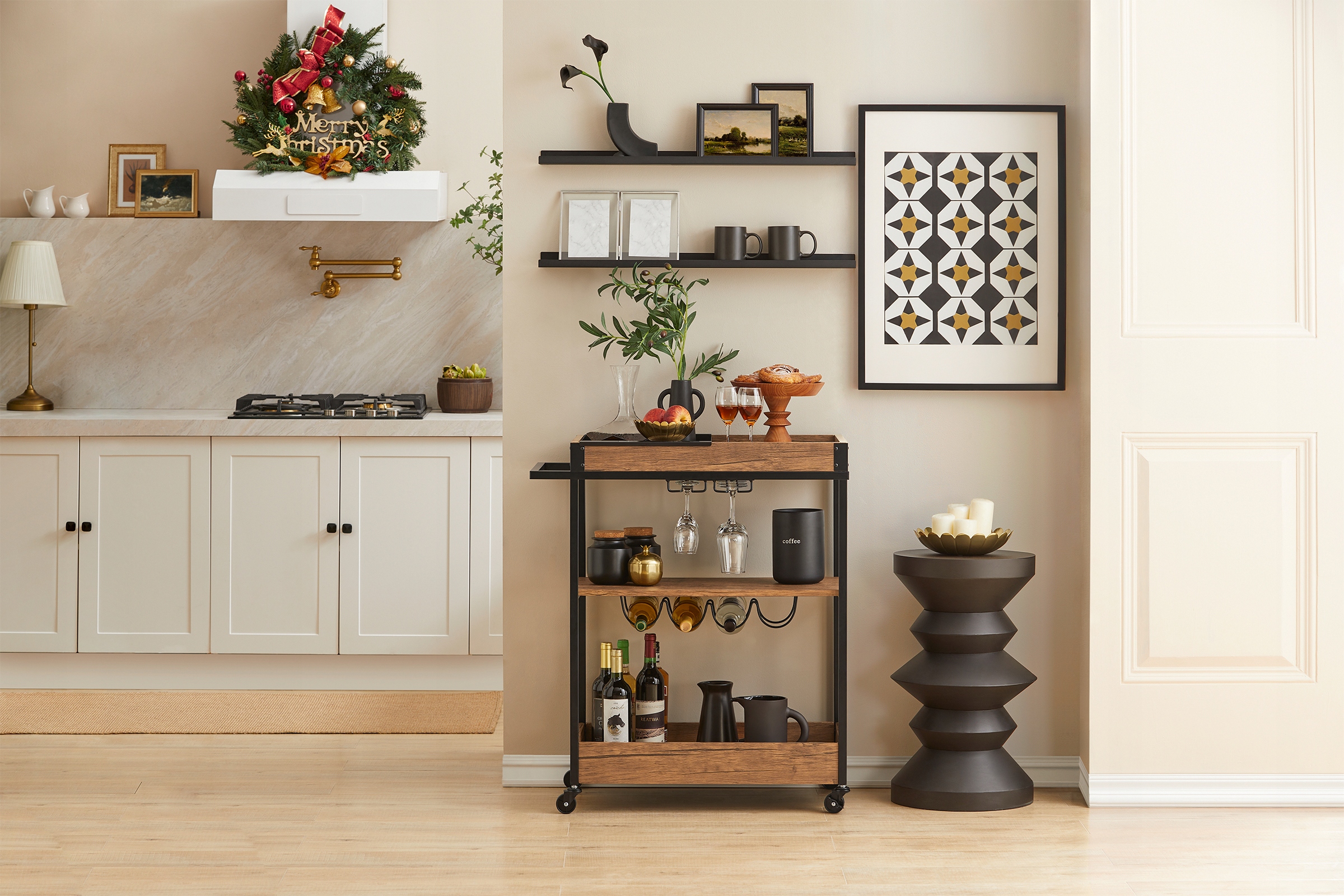 Эта стильная и функциональная тележка для сервировки идеально подходит для кухни, гостиной и других мест, где требуется больше организованности.