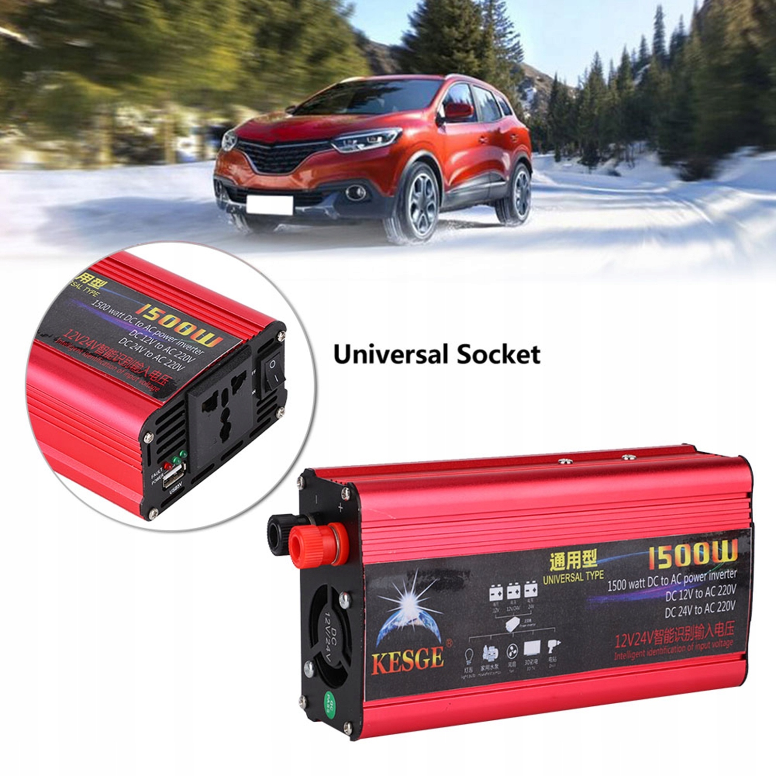 Автомобильный преобразователь мощности 1500 Вт, USB-адаптер для зарядного устройства, модифицированный синусоидальный сигнал постоянного тока 12 В/24 В в переменный ток 220 В