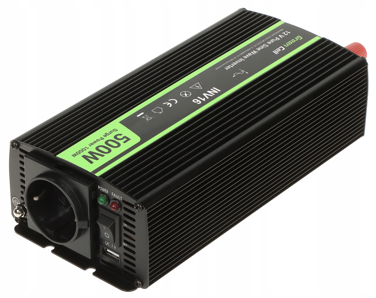 ПРЕОБРАЗОВАТЕЛЬ НАПРЯЖЕНИЯ 12 В постоянного тока - 230 В переменного тока, 500 Вт, ЗЕЛЕНАЯ ЯЧЕЙКА