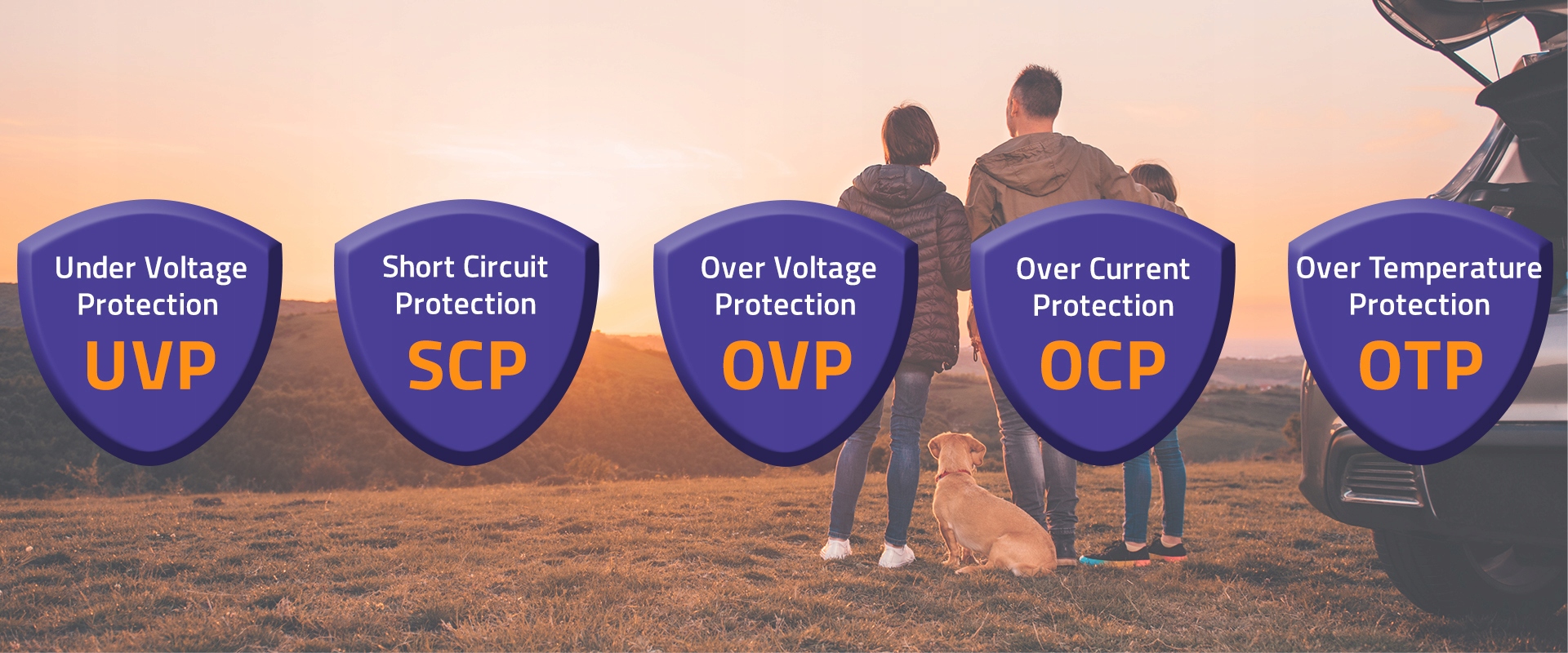 - Защита: UVP/OVP/OCP/OTP/SCP
