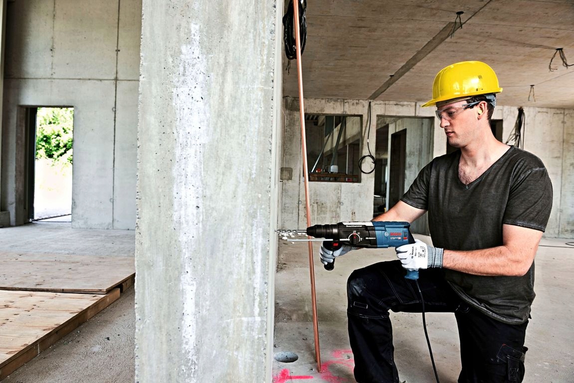 Антивибрационная система Active Vibration Control от BOSCH, благодаря которой, по сравнению с предыдущей моделью - GBH 2-28 F, вибрации, передаваемые на руки, были снижены почти на 30%, и сверление или ковка стали быстрее и комфортнее.