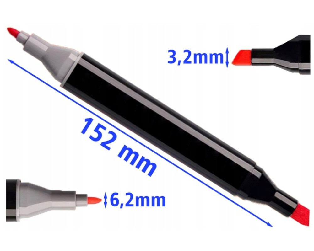 У маркеров два наконечника, инструмент менять во время работы не нужно! Круглый тонкий кончик предназначен для писания, выделения и рисования тонких линий. Более широкий скошенный кончик подходит для раскрашивания, выделения и рисования толстых линий.< /б >