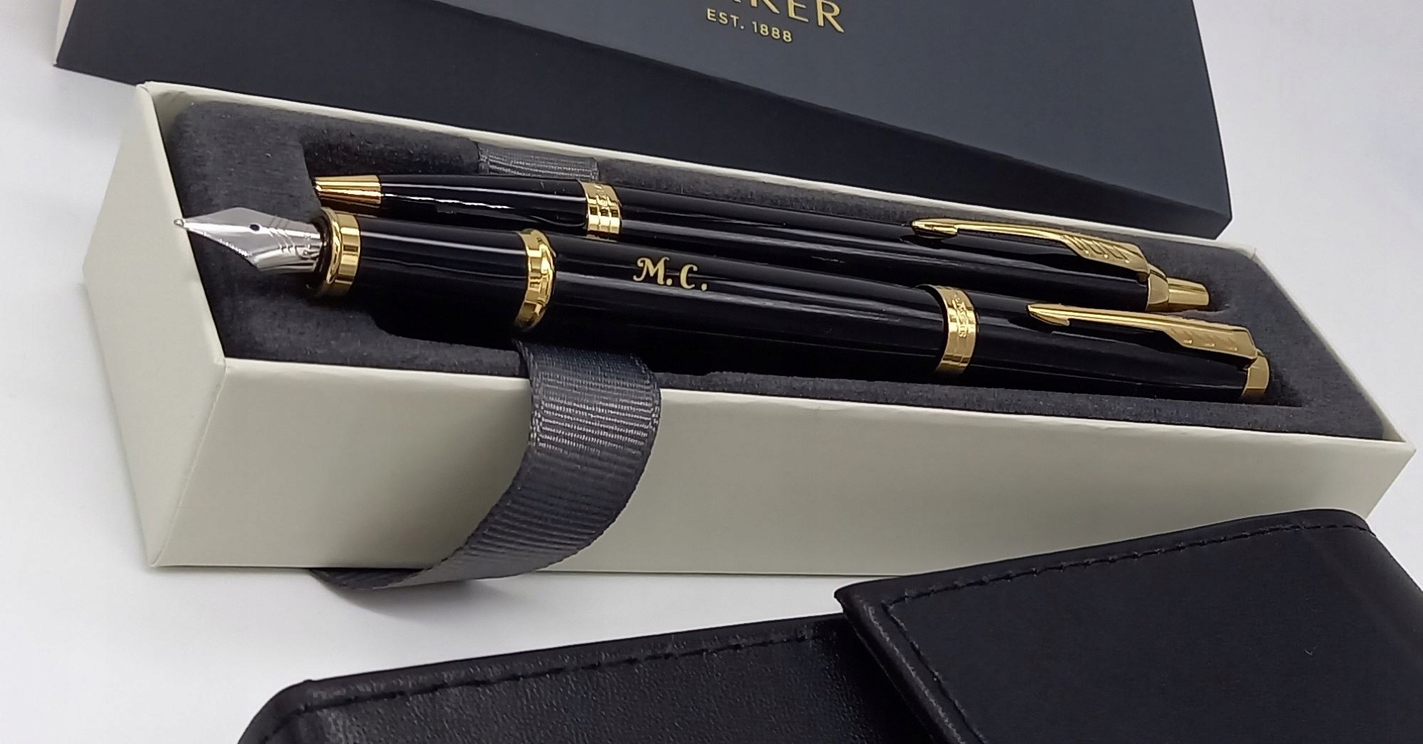 Подарочный набор Parker IM Set Black GT с перьевой ручкой и футляром для шариковой ручки с выгравированной вашей надписью