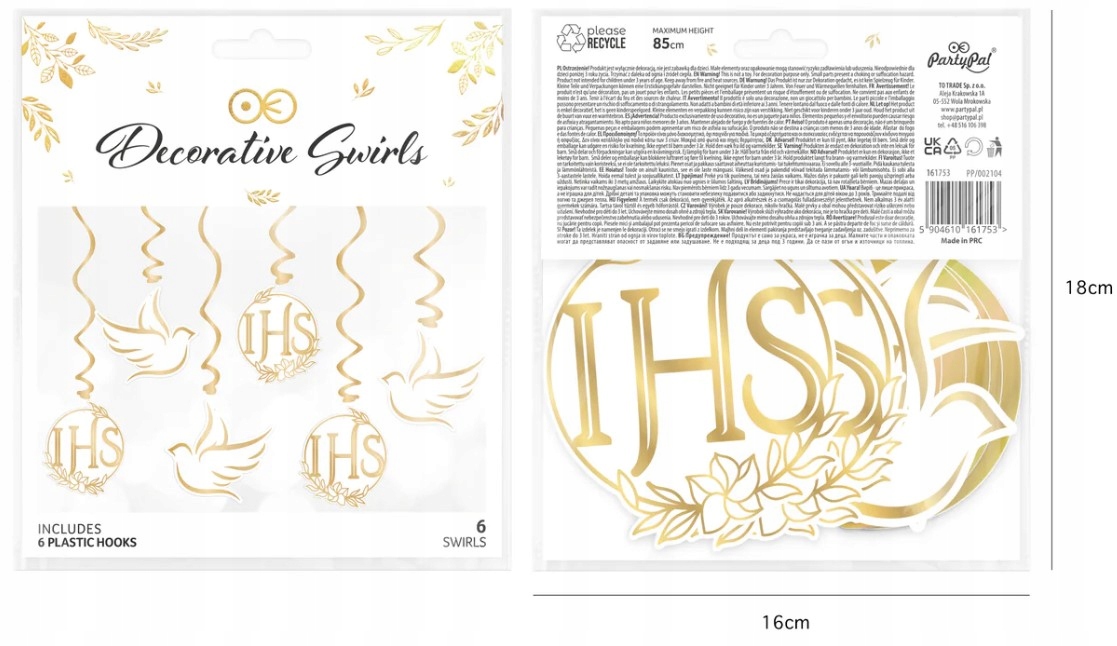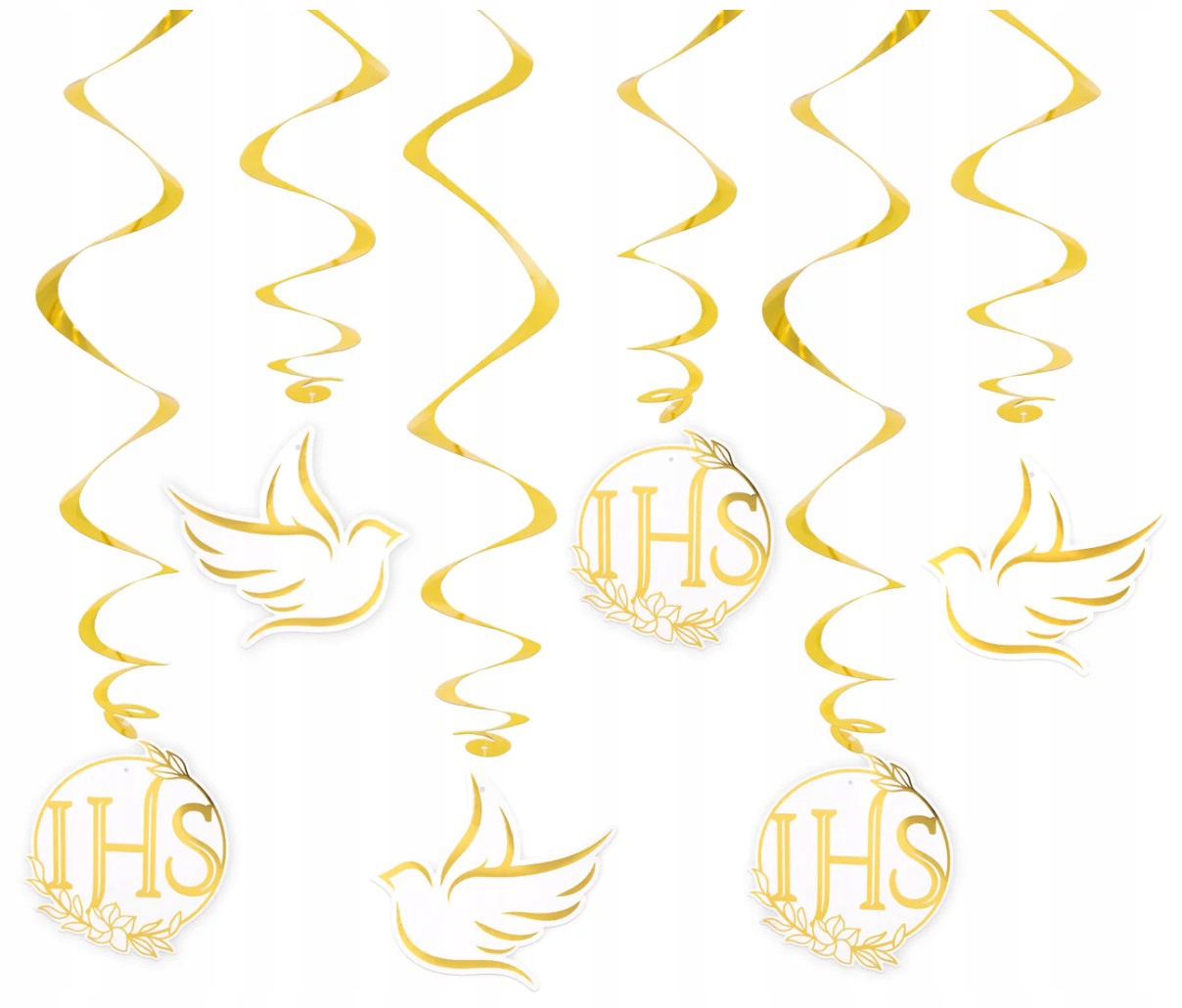 Элегантные золотые подвесные украшения с мотивом голубьi и символом IHS, идеально подходящие для Первого причастия. Они придадут вечеринке неповторимый характер, создав красивую и утонченную декоративную обстановку.