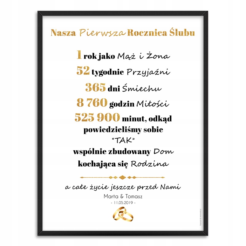 Персонализированный плакат на годовщину свадьбы — идеальная идея подарка для родителей, друзей, бабушек и дедушек или других близких людей, отмечающих годовщину. Такой постер напомнит обо всех днях, проведенных вместе.