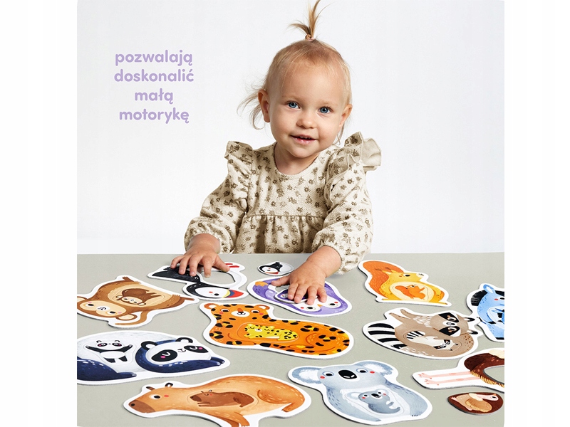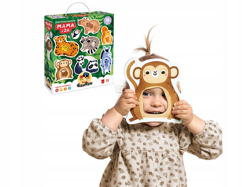 Пазлы «Первые мама и я» — это уникальный обучающий набор для самых маленьких исследователей и отличная идея для их первых головоломок. Он состоит из 11 больших пазлов из двух частей с дырочкой. Игра предполагает сопоставление с отверстиями элементов разной формы. Животные – одна из любимых тем детей. Очаровательные иллюстрации вдохновляют на создание множества универсальных игр. Идеи для них вы можете найти в руководстве, входящем в комплект.