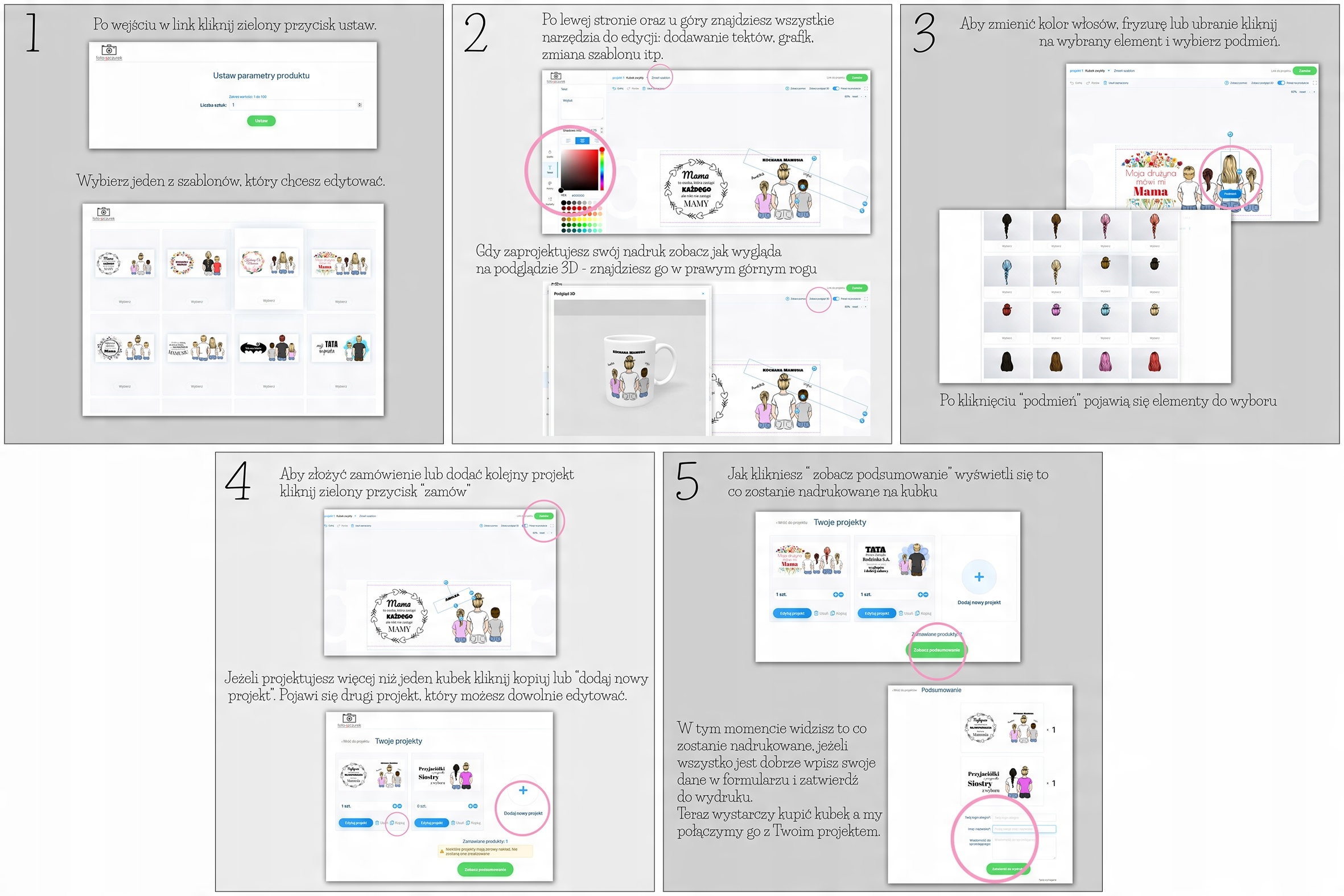 • Чтобы отправить нам свои дизайны, нажмите «заказать» и «посмотреть сводку». Ваш дизайн будет отображен, и мы напечатаем его на кружке.