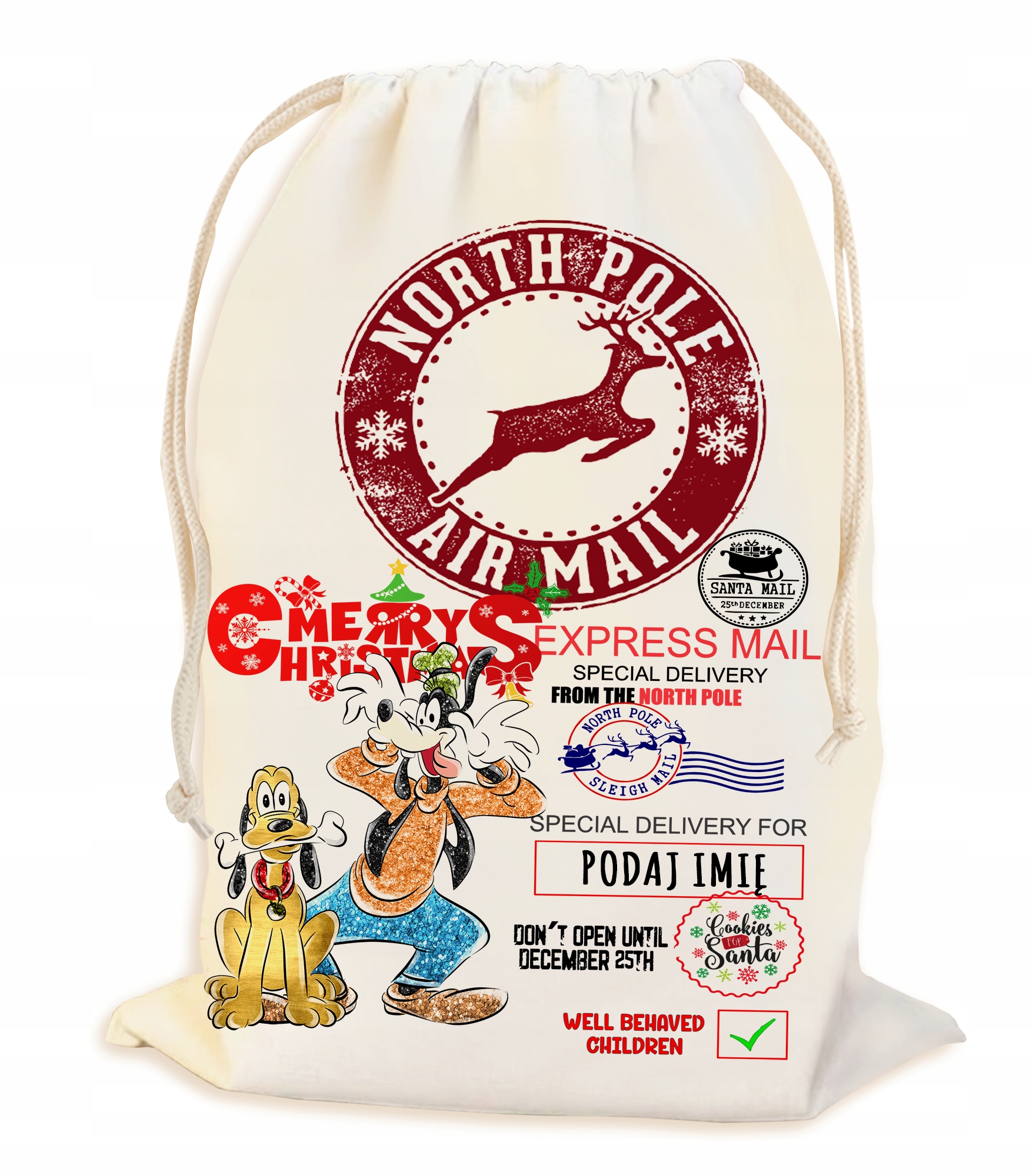 ПЕРСОНАЛИЗИРОВАННАЯ СУМКА С ИМЕНЕМ ИЗ ОРГАНИЧЕСКОГО ХЛОПКА 200 г/м2, СКРУЧЕННАЯ С ОБЕИХ СТОРОН ХЛОПКОВОЙ НИТЬЮ. ОТЛИЧНОЕ РЕШЕНИЕ ДЛЯ УПАКОВКИ РОЖДЕСТВЕНСКИХ ПОДАРКОВ ПОД ЕЛКОЙ, ОСОБЕННО ДЛЯ ДЕТЕЙ.