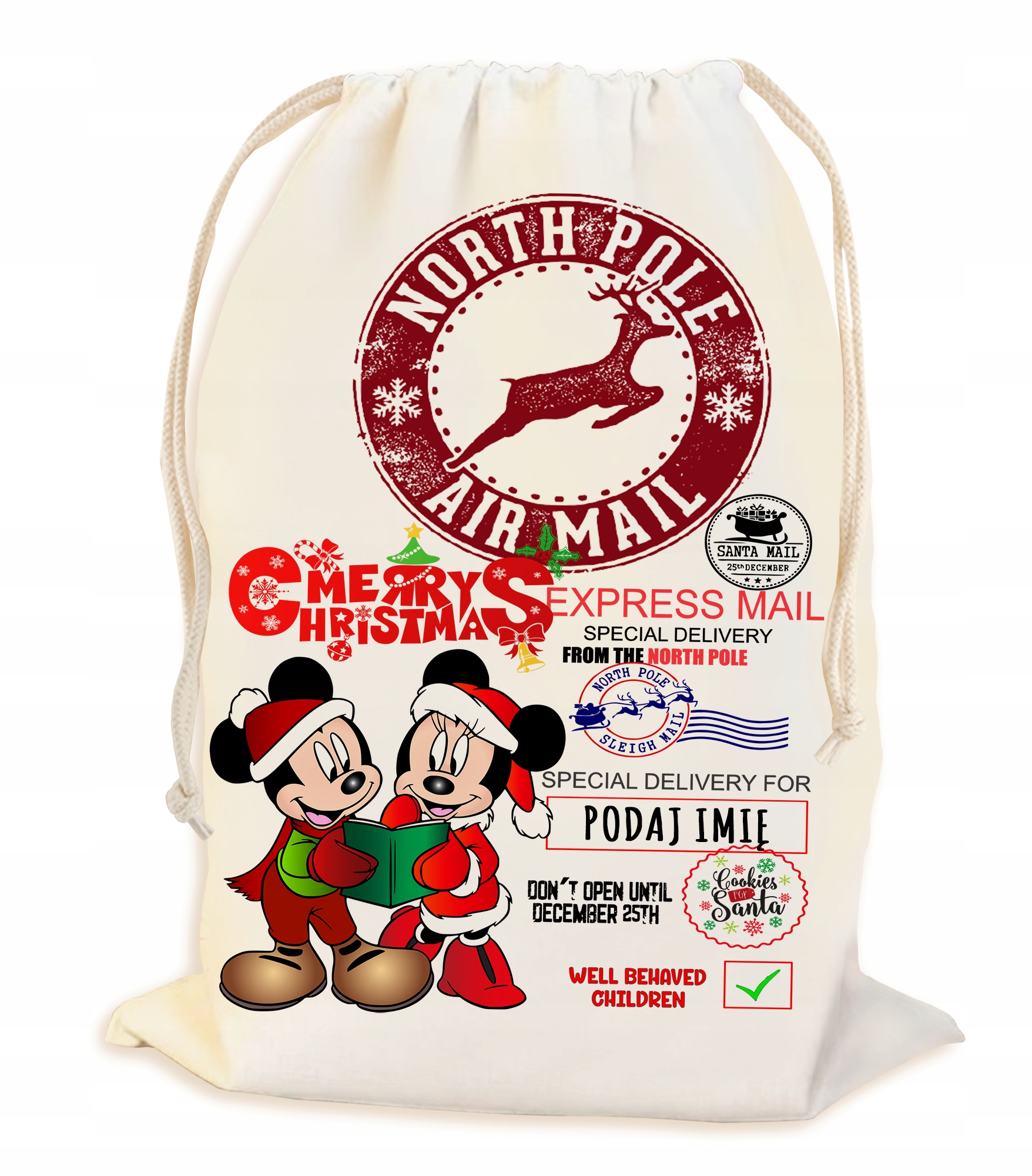 ПЕРСОНАЛИЗИРОВАННАЯ СУМКА С ИМЕНЕМ ИЗ ОРГАНИЧЕСКОГО ХЛОПКА 200 г/м2, СКРУЧЕННАЯ С ОБЕИХ СТОРОН ХЛОПКОВОЙ НИТЬЮ. ОТЛИЧНОЕ РЕШЕНИЕ ДЛЯ УПАКОВКИ РОЖДЕСТВЕНСКИХ ПОДАРКОВ ПОД ЕЛКОЙ, ОСОБЕННО ДЛЯ ДЕТЕЙ.