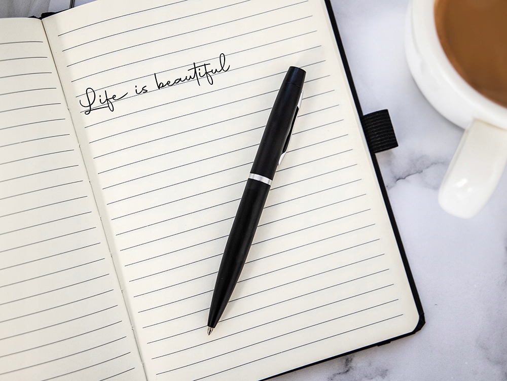 Персональний блокнот A5 чорний + ручка з квітами