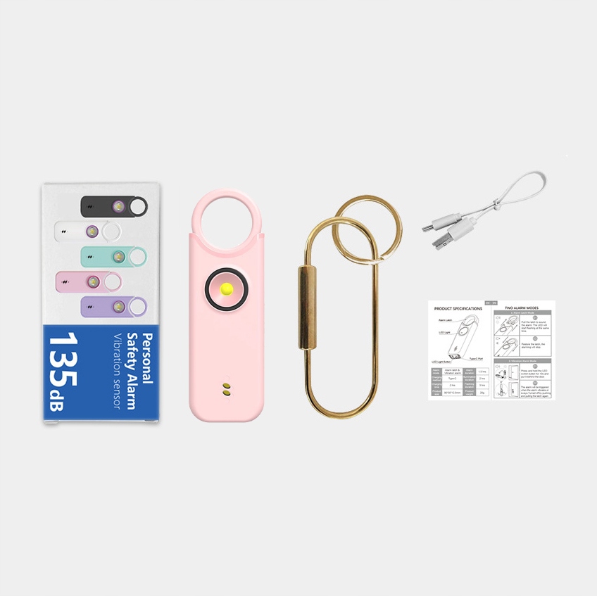 Перезаряжаемая личная охранная сигнализация для женщин, брелок с сиреной 135 дБ со светодиодной стробоскопической лампой, устройства аварийной безопасности, брелок-сигнализация для женщин, детей и пожилых людей