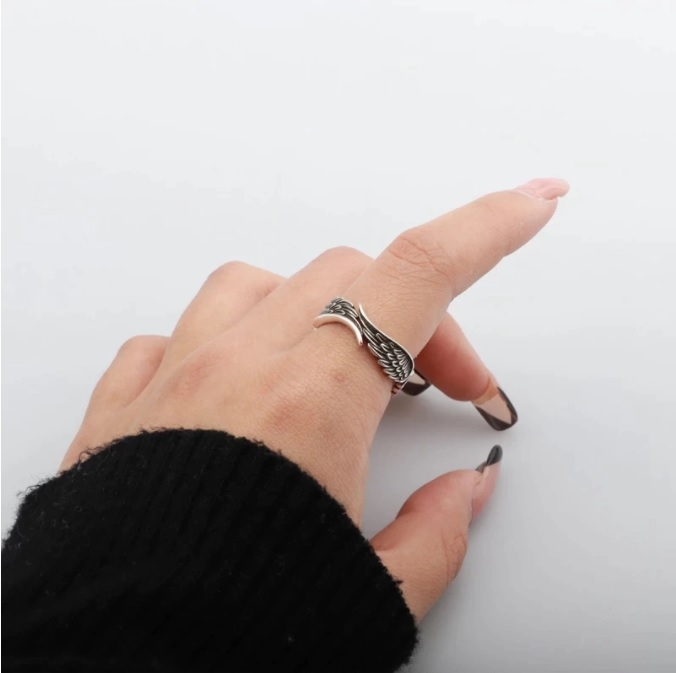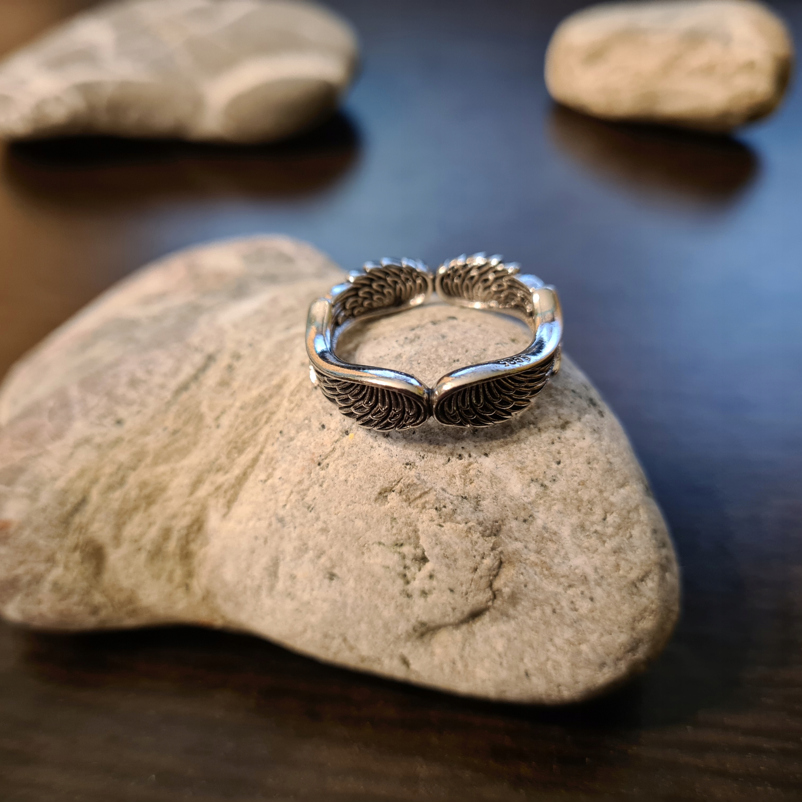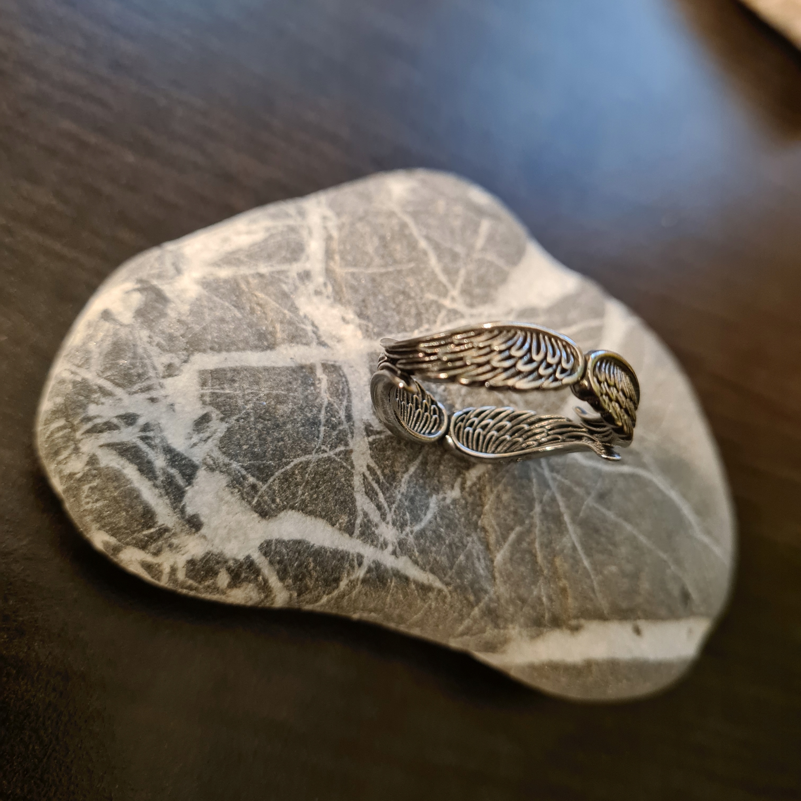 Красивое тонкое кольцо-печатка с крыльями ангела
