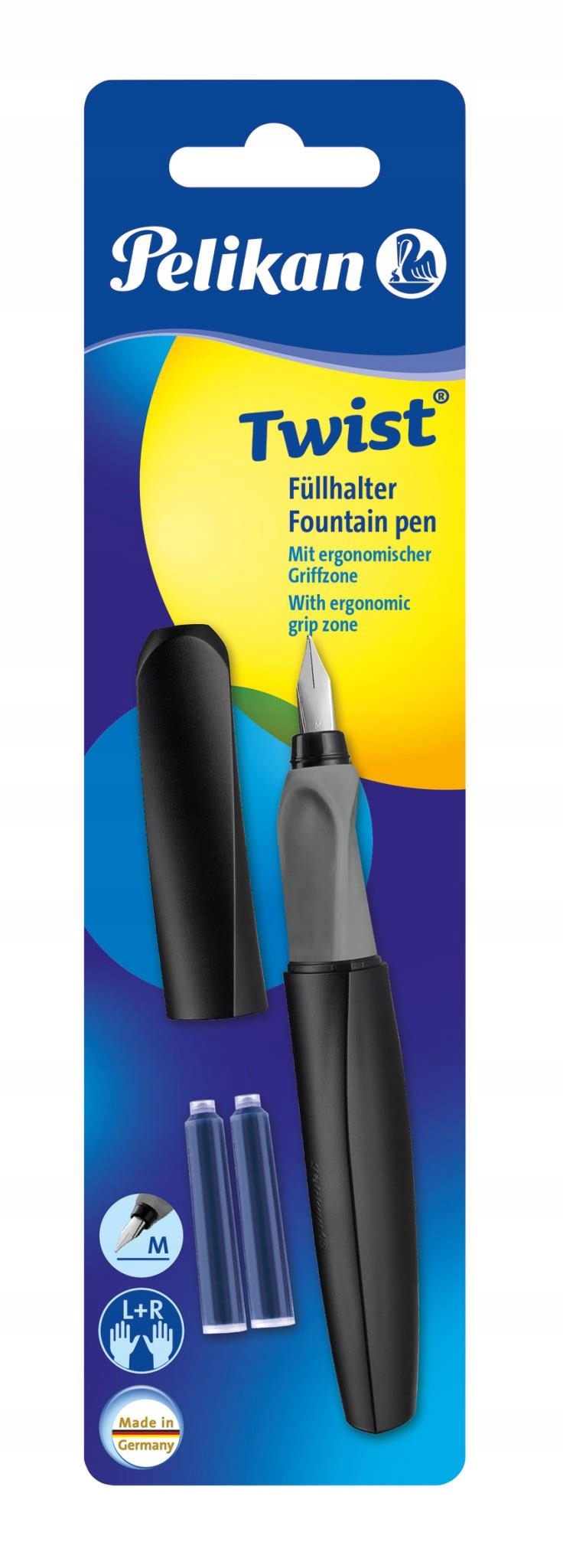 ПЕРЬЕВАЯ РУЧКА PELIKAN TWIST 457M ЧЕРНАЯ +2 КАРТРИДЖА