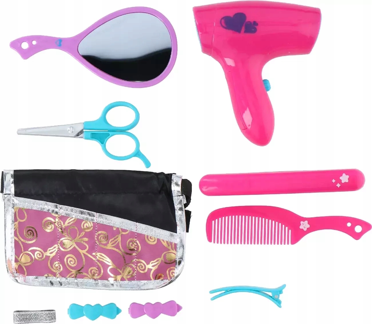 Набор включает в себя сушилку для батареи, выпрямитель, кисть, расческу, ножницы и многие другие аксессуары , которые повесутся. Это будет еще более реалистично. Благодаря этому ребенок может экспериментировать со стилизацией и создать свои собственные прически.