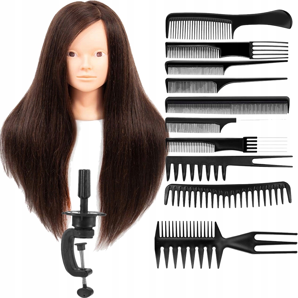 ТРЕНИРОВОЧНАЯ НАБОРКА ДЛЯ ПРИЧЕСОК 70см КОРИЧНЕВАЯ, 6 ГРЕБЕНЕЙ