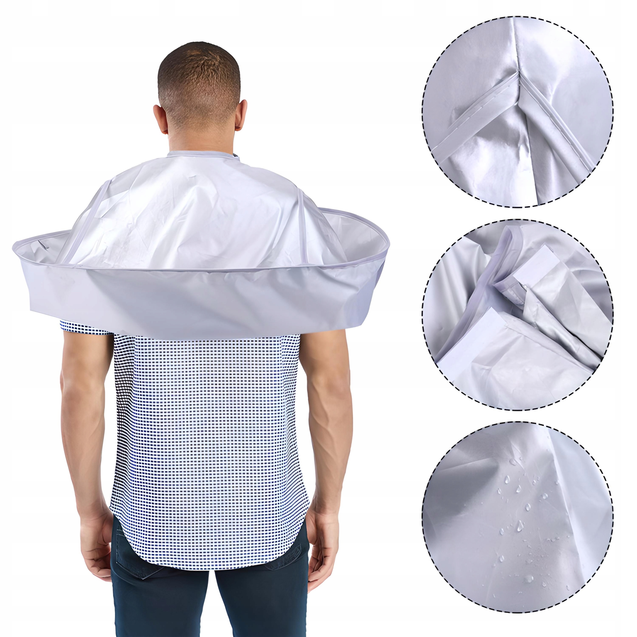 Накидка сконструирована таким образом, что состриженные волосы удерживаются в воротнике и не падают на пол, что делает ее очень удобной при уборке в салоне и дома. Использование ошейника особенно удобно для детей, поскольку воротник обеспечивает свободу движений, что очень важно для ребенка. Удобное использование ошейника также подойдет каждому взрослому, поскольку он не сковывает руки и позволяет нам чувствовать себя очень комфортно.