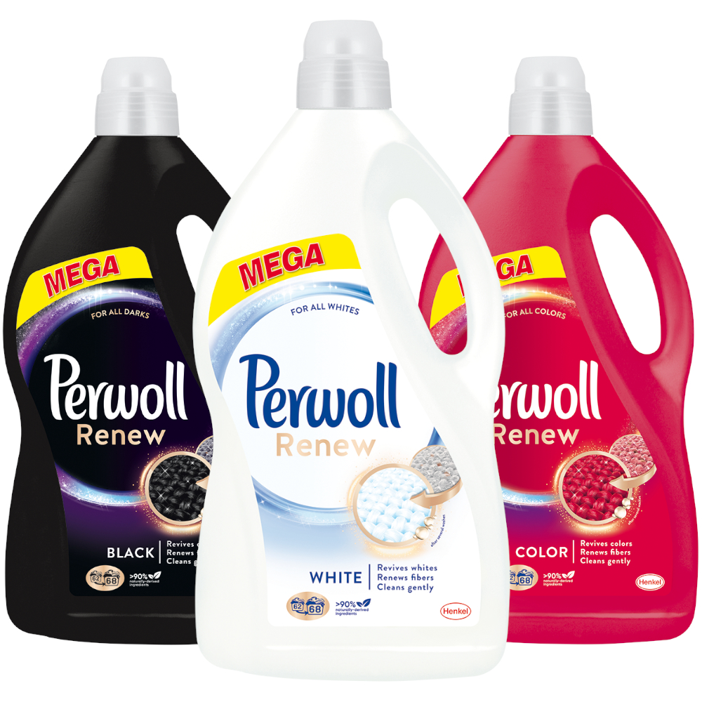 Perwoll Renew Black — это жидкость для стирки, которая защищает, восстанавливает и обновляет цвет вашей темной одежды, благодаря чему ваша одежда будет выглядеть как новая после каждой стирки.