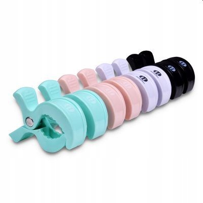 • Зажимы для колясок доступны в четыре цвета на выбор: черный, белый, мятный, розовый.