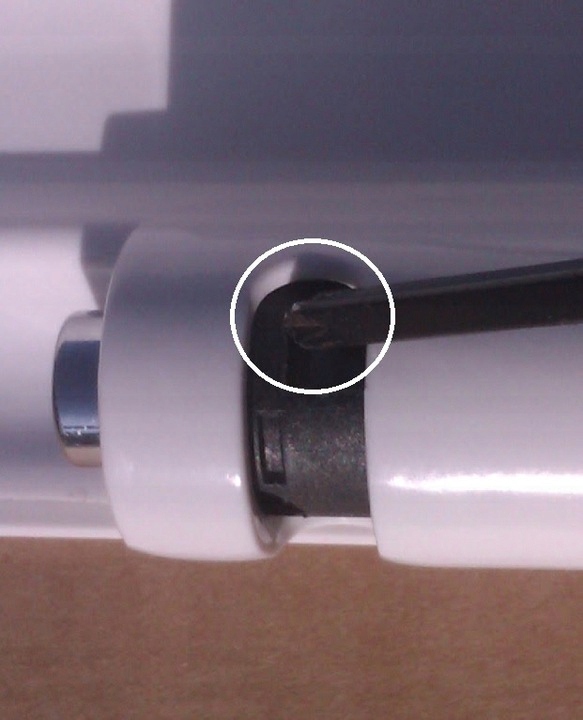 <р>1. Снимите петлю с помощью плоской отверткив направлении стрелки (в сторону)