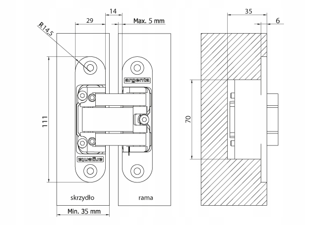 Петля ARGENTA Medium Renson 111x29 мм скрытая противопожарная защита