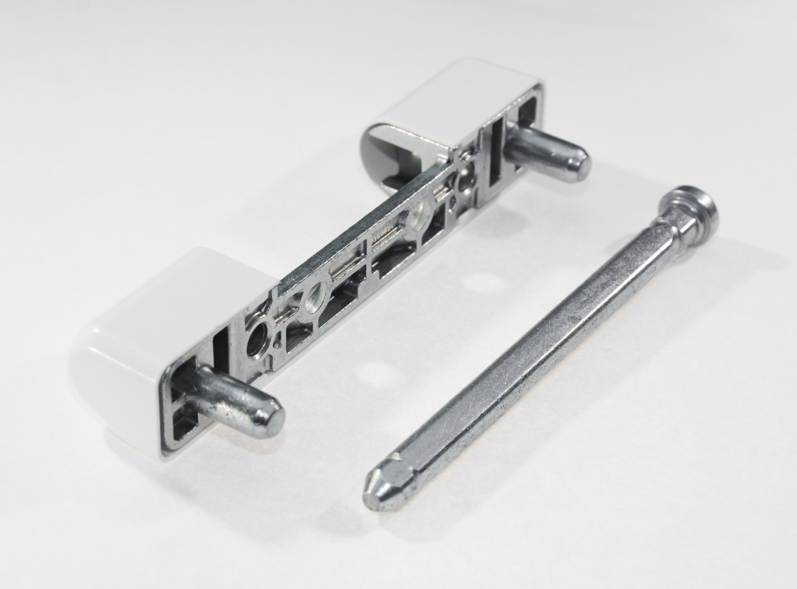 Описание: петля изготовлена из оцинкованного металла. Это верхняя оконная петля. Петля прикручивается к оконной раме четырьмя винтами. Он имеет эстетичную белую пластиковую крышку. Этот тип петель чаще всего используется в окнах ПВХ.