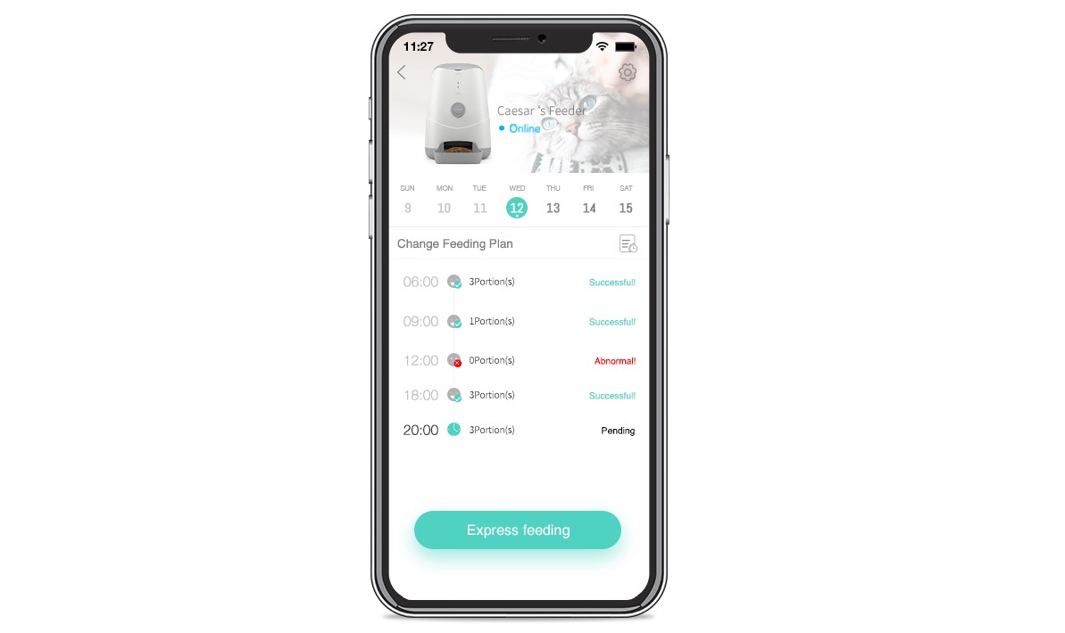 Специальное специальное приложение позволяет программировать время и порции кормления, чтобы сформировать здоровые пищевые привычки и предотвратить переедание или недоедание вашего питомца. Создайте план кормления для своего питомца и кормите его одним щелчком мыши.