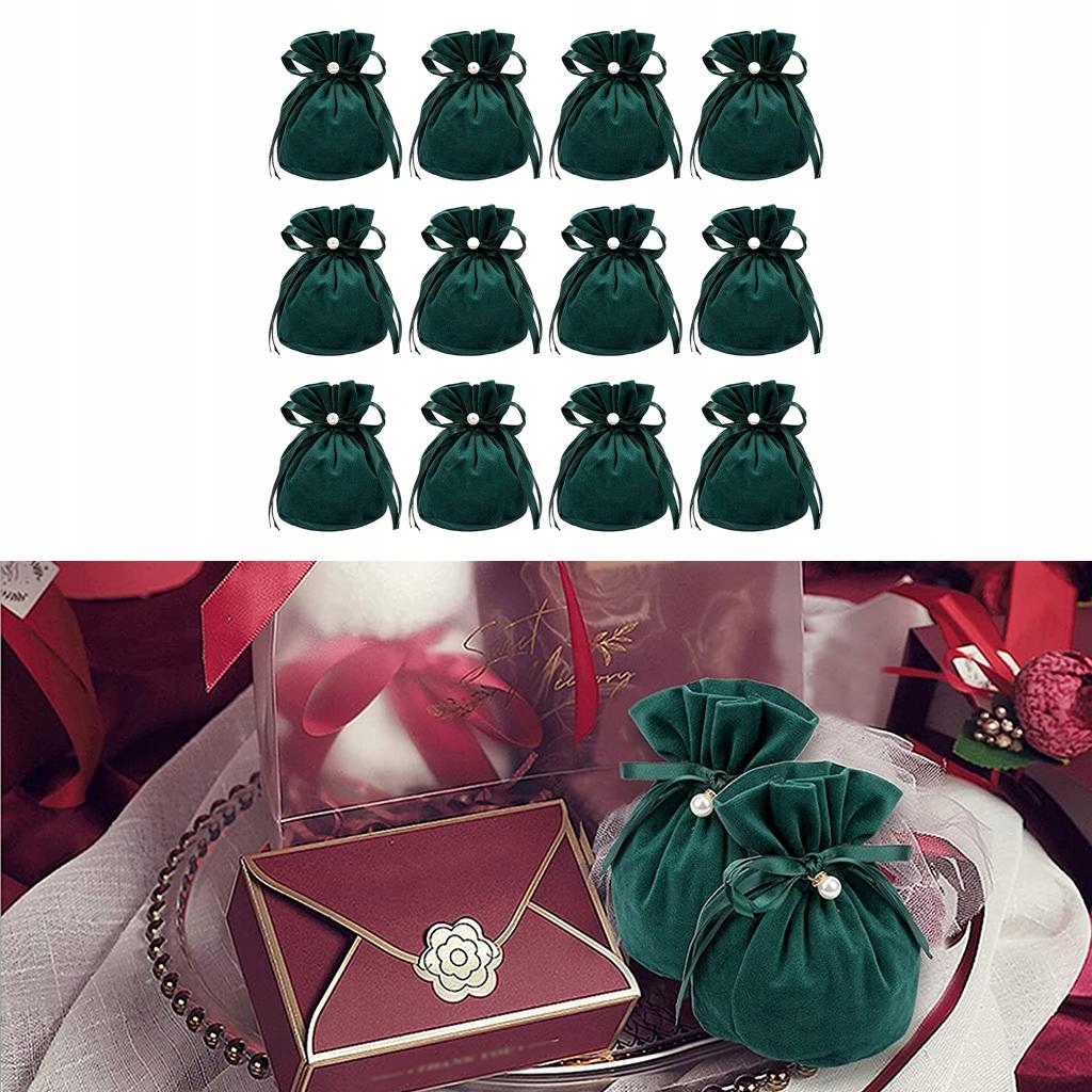 12 зеленых бархатных сумок на шнурке размером 3,9 x 4,7 дюйма.