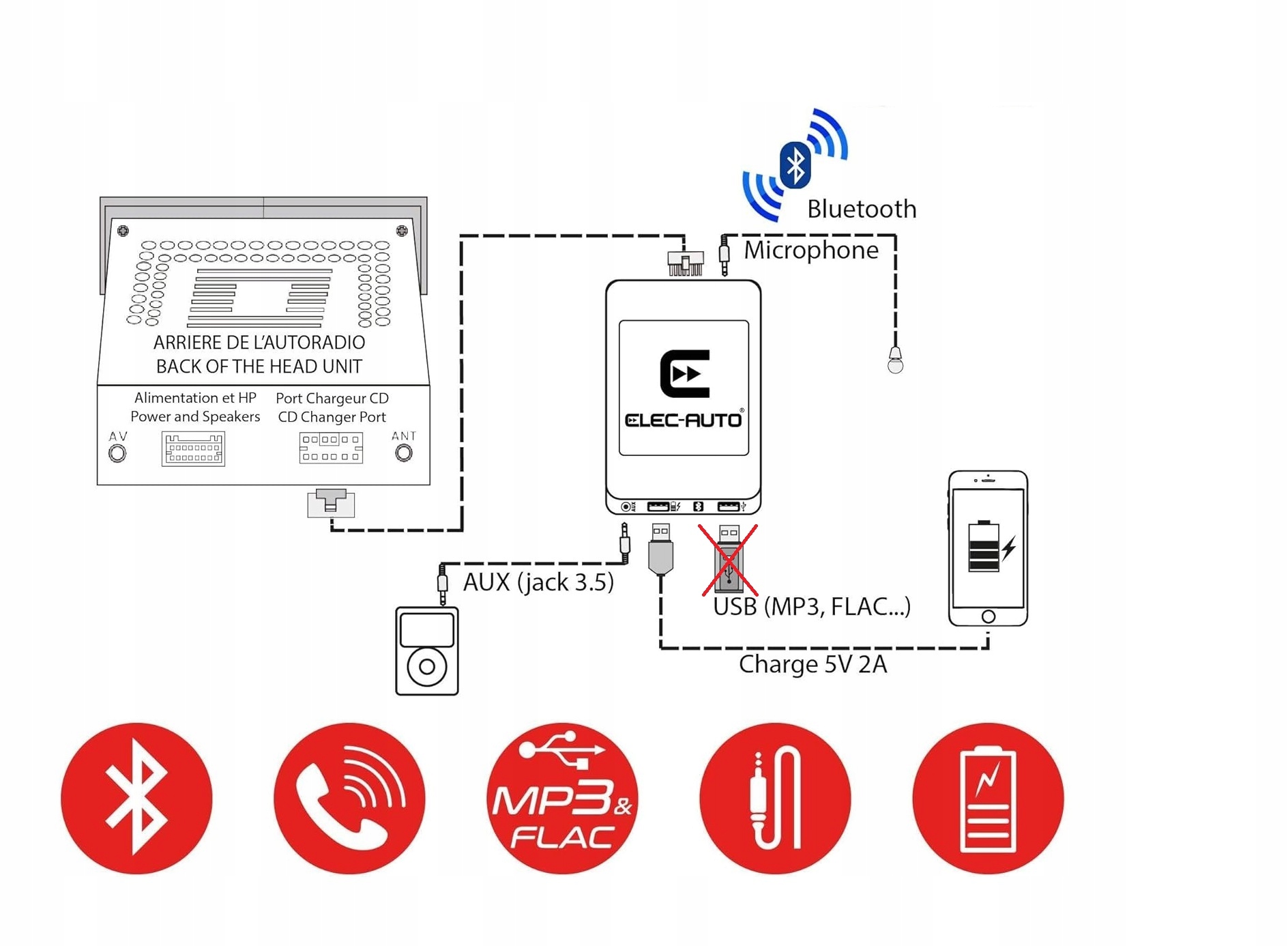 Multi-Link была разработана, чтобы позволить вам подключить смартфон через Bluetooth, USB-память или вспомогательное устройство непосредственно к автомобилю Peugeot, Citroen с Plug Plug Plug.
