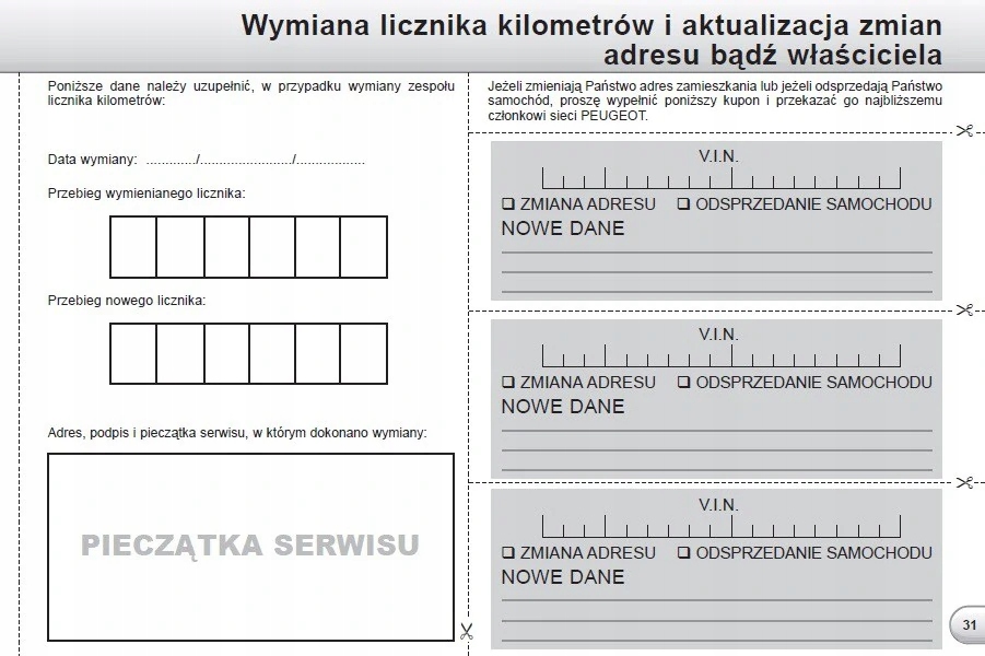Peugeot Polska Książka Serwisowa 2005-2009