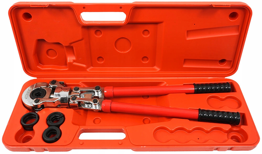 Гидравлический пресс для ручного гидравлического пресса для зажима разъемов на трубах PEX с набором из 4 матриц. Обофхену оснащен гидравлическим цилиндром, который позволяет вам точно и затягивает разъемы с силой 60 кН. Роторная головка 360 ° позволяет вам усердно работать, чтобы добраться до мест. Напротив, телескопические ручки, которые позволяют им расширять их с 57 до 80 см, что снижает мощность, необходимую для остановки подгонки. Система быстрого матрицы позволяет легко заменить матрицы в зависимости от ваших потребностей. Прага оснащена набором разъемов: - Тип U: 16 мм / 20 мм / 25 мм / 32 мм.