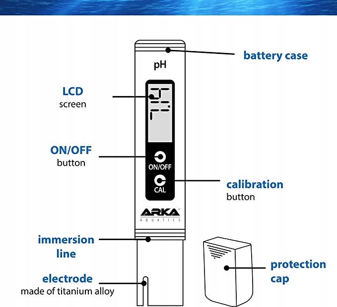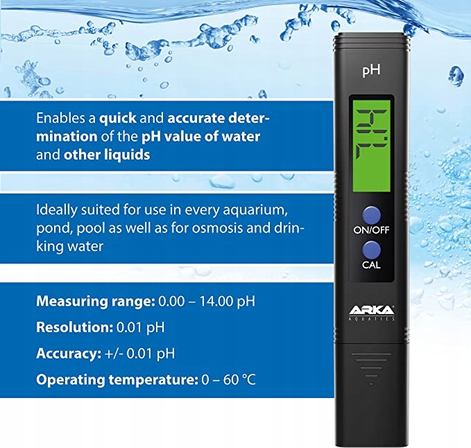 PH-метр Arka myAqua — современный измерительный прибор. Он используется для контроля pH воды и других жидкостей. Его можно использовать в аквариуме, пруду или бассейне. Он также подойдет для питьевой и осмотической воды. Так что он пригодится в каждом доме.