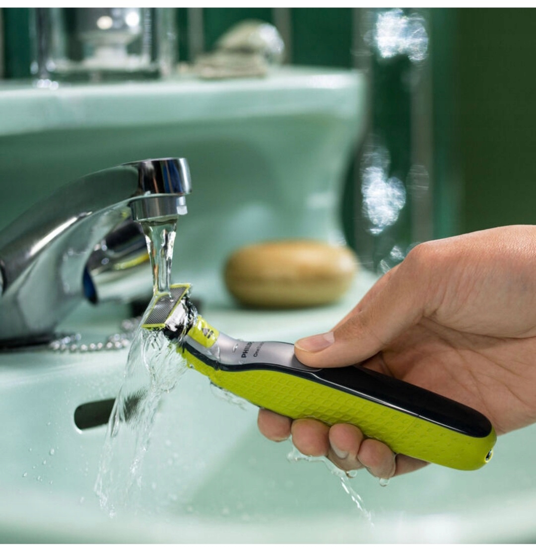 Используйте устройство с помощью раковины или возьмите его с собой для душа . Philips OneBlade для использования на Wet и Dry Chre легко чистить и может использоваться с пеной или без него