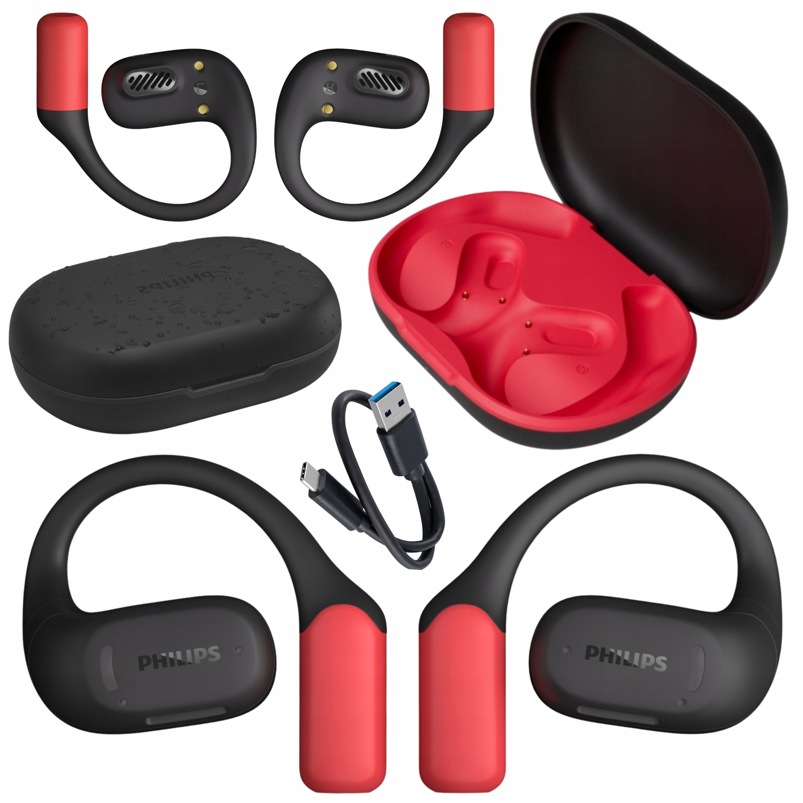 БЕСПРОВОДНЫЕ НАУШНИКИ PHILIPS SPORTS OPEN TRUE С КРЮЧКОМ IP55, ЧЕРНЫЕ