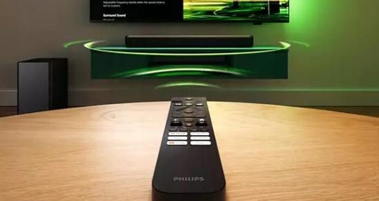 Вы можете Отрегулируйте громкость звуковой панели с помощью телевизора дистанционного управления. Если У вас есть телевизор Philips Ambilight, EasyLink позволяет использовать Пилот для переключения между запрограммированными режимами консилеров Звуковые, низкие и высокие регулировки тона - и многое другое.