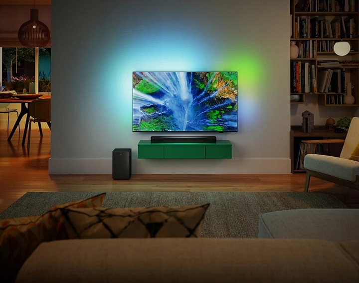 Эта мощная звуковая панель и беспроводной сабвуфер оживит фильмы и Не только. Почувствуйте грохот взрывов и слушайте музыку. Имеет значение, Эти игры становятся еще более эпическими. Передовые технологии Аудио обеспечивает реалистичный звук независимо от того, что вы смотрите.