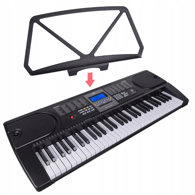 Клавиатура МК 2106 имеет ✅ подставку для нот, табулатур и текстов песен. Вы также можете удобно разместить на нем планшет или телефон с установленным приложением, которое позволит вашему ребенку учиться. Это идеальное решение, когда наш ребенок начинает свое приключение с музыки и использует ноты.