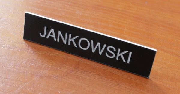- черный ламинат с белой гравировкой (возможно изготовление бейджей в других цветах)