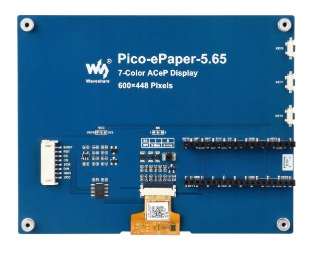 Pico-ePaper-5.65 - модуль с 7-ми цветным дисплеем E-Paper 5,65" 600x448 для Raspberry Pi Pico