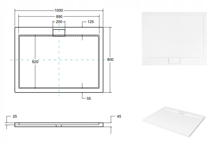 BESCO Душевой поддон прямоугольный Axim 100 x 80 + сифон